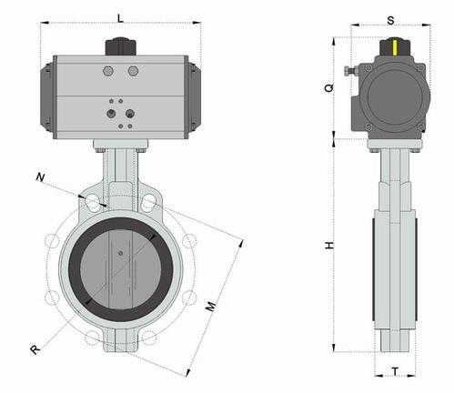 進(jìn)口氣動對夾式襯膠蝶閥通過氣動執(zhí)行機(jī)構(gòu)驅(qū)動蝶板旋轉(zhuǎn),實現(xiàn)流體的快速啟閉與流量調(diào)節(jié)27。其采用對夾式連接設(shè)計,無需額外法蘭,顯著節(jié)省安裝空間,尤其適用于緊湊型管道系統(tǒng)(如船舶、化工裝置)56。閥體內(nèi)壁及蝶板表面襯覆橡膠材料(如NBR、EPDM、FKM),兼具耐腐蝕性與密封性能,可適配腐蝕性介質(zhì)及衛(wèi)生要求較高的場景