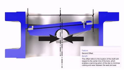 第二道偏心,閥桿軸心與閥體中心偏心