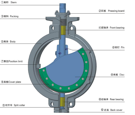 進口高性能蝶閥,采用雙偏心結構設計。軸中心雙偏離閥體結構中心,同時結合閥板圓弧密封面的設計,使閥板在打開時迅速脫離密封座,以減小密封面的磨擦力,閥板在關閉時具有更好的密封性能。并使閥門操作力大大減少,有效提高了蝶閥的控制精確度。該系列蝶閥密封壽命長;密封性能卓越,適用于一般腐蝕性氣體,液體介質的調節(jié)和切斷使用。